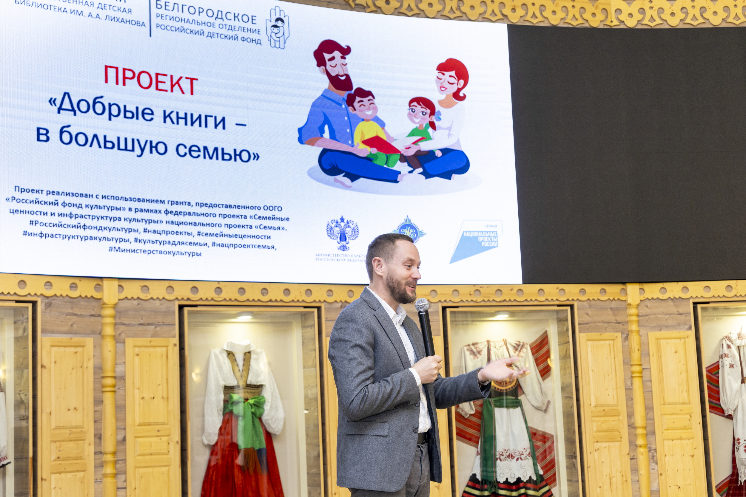 Зрителям презентовали виртуальную версию фотовыставки «Культура начинается с семьи» и видеоролик о семьях «Культура – дело семейное». Для всех участников праздника состоялась культурная программа – экскурсии по музею народной культуры, музею-диораме «Курская битва. Белгородское направление» и выступление воспитанников детской школы искусств № 1 города Белгорода.