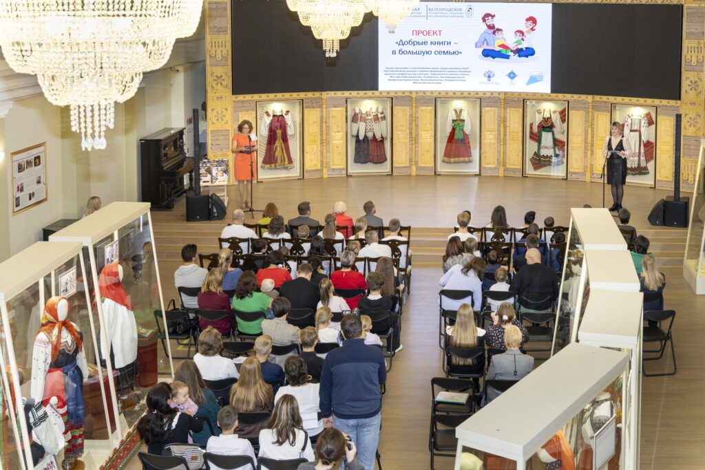 Состоялась торжественная акция дарения книг для семейной библиотеки многодетным читающим семьям — участникам проекта «Добрые книги – большую семью». Активная читающая многодетная семья была выбрана в каждом районе области на конкурсной основе. Финалистами стали 25 семей, которые всё лето посещали библиотеку, много читали и участвовали в литературных событиях.